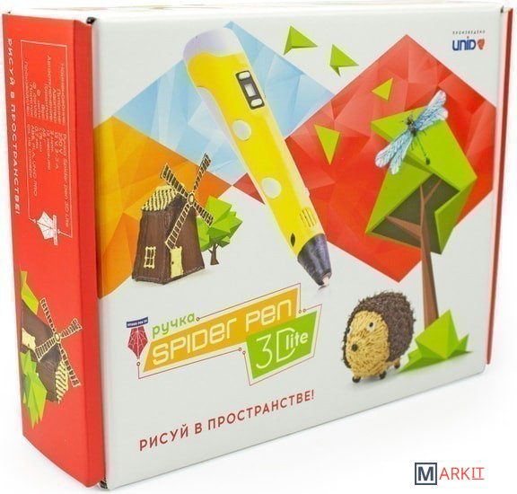 Комплектация | - 3D ручка Spider Pen LITE с ЖК-дисплеем;- Блок питания 12V 2A/3A;- Демо-пластик 10 метров;- документация. |