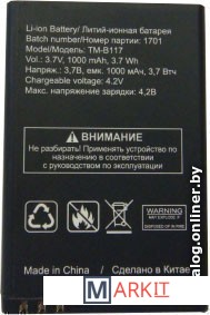 Markit » Аккумуляторы для телефонов » Аккумулятор для телефона TeXet TM-B117