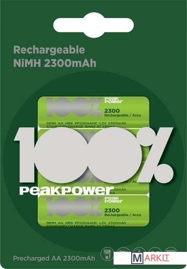 Markit » Батарейки, аккумуляторы, зарядные » Аккумулятор PeakPower AA 2300mAh 4 шт. PP230AAHC-2U4