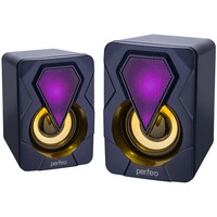 Общая мощность колонок 6 Вт. Это, конечно, не позволяет поставить её в один ряд с полноценными мощными и дорогими аудиосистемами, но вполне способна обеспечить яркое и приятное звучание за приемлемую стоимость, простоту подключения и использования, а также за стильный внешний вид и небольшие габариты.Компьютерные колонки 2.0 "SHINE" из серии "Game Design" от Perfeo – реальная и очень хорошая альтернатива обычному компьютерному звуку! Колонки PERFEO "SHINE" идеально подойдут для тех, кто увлекается компьютерными играми, любит смотреть кино, слушает подкасты, аудиокниги и любимую музыку!Регулятор на передней панели одной из колонок позволит вам настроить комфортный уровень громкости звука, а RGB-подсветка сделает их настоящим украшением персонального рабочего места. Особенно это оценят дети и взрослые, которые увлекаются компьютерными играми.