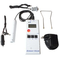 Комплектация | Прибор «Алконт СМ» - 1 шт.Адаптер сети 220 В - 1 шт.Шнур питания от бортовой сети 12В - 1 шт.Шнур связи с IBM PC - 1 шт.Дискета программной поддержки 3,5" - 1 шт.Мундштук индивидуального пользования - 100 шт.Формуляр и информационно-методические мате |