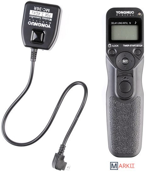 Беспроводной пульт дистанционного управления Yongnuo MC-36R / N3 является усовершенствованной заменой тросика Nikon MC-36. Yongnuo MC-36R оснащен дополненным приемником с радиоканалом с частотой работы 2,4 Ghz. Используется для дистанционного управления фотокамерами Nikon D610, D600, D90, D7200, D7100, D7000, D5500, D5300, D5200, D5100, D5000, D3300, D3200, D3100