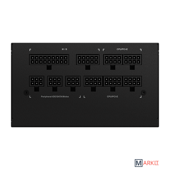 Во всех ключевых блоках схемотехники применяются высококачественные японские конденсаторы, которые обеспечивают безупречную эффективную работу и продолжительный срок службы изделия.По сравнению с типовой схемой охлаждения силовых компонентов, в изделии GIGABYTE установлен радиатор, площадь теплорассеивания которого увеличена почти на 200%, кроме того, оптимизировано распределение воздушных потоков. Таким образом, за счет повышения эффективности теплорассеивания более чем на 10%, существенно возрастает срок службы ключевых компонентов.Скорость вращения вентилятора регулируется в соответствии с автоматическим определением потребляемой мощности, крыльчатка останавливается, когда система находится в режиме простоя, либо нагрузка не превышает 20 %. Гидравлический подшипник в составе вентилятора обеспечивает стабильную работу и продолжительный срок службы изделия.Для того, чтобы быть уверенным в безупречной работоспособности ПК в любом режиме, мы оснастили блоки питания AORUS совершенными встроенными схемами защиты OCP, OTP, OVP, OPP, UVP и SCP, а также успешно провели всестороннее тестирование и испытание наших изделий на соответствие нормам и правилам безопасности целого ряда стран.Модульный дизайн и плоские кабели черного цвета. Подключайте только необходимые кабели, минимизируйте помехи для конвекционных воздушных потоков и сохраните оптимальной схему теплорассеивания корпуса.Изделие, отвечающее требованиям сертификата 80 Plus Gold, в условиях 50% нагрузки, демонстрирует энергоэффективность на уровне >90%. Чем выше энергоэффективность тем ниже потери в цепях питания, на фоне комфортного температурного режима для ключевых компонентов и пониженного уровня шума вентилятора системы охлаждения.Выделенная шина +12 В обеспечивает качественное питание требуемой мощности и стабильную работу установленных в системе компонентов, в том числе в режиме Overclocking. Процедура подключения силового кабеля также не вызывает затруднений.Оригинальные конструкторские разработки, фирменная технология теплорассеивания, реализованная в составе различных продуктов GIGABYTE, а также применение высококачественной элементной базы в рамках концепции Ultra Durable, предопределили возможность уменьшить длину корпуса блока питания до 140 мм, что позволяет легко инсталлировать изделие, даже в условиях ограниченого пространства для инсталляции блока питания, предусмотренного конструктивом шасси системного блока.