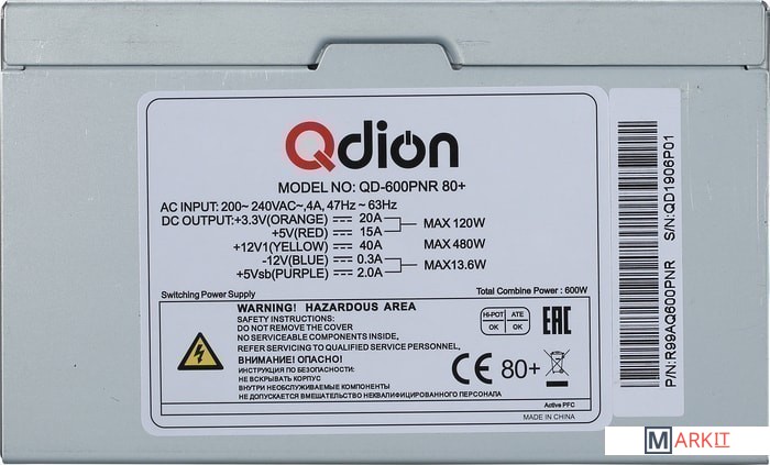 Markit » Блоки питания » Блок питания Qdion QD-600PNR 80+