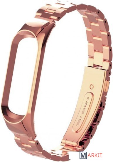 Markit » Сменные ремешки и браслеты » Браслет Bingo металлический, блочное плетение для Xiaomi Mi Band 5/6 (розовое золото)