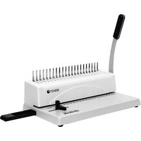Базовый переплетчик на пластиковую пружину. Подходит для использования в малом офисе и дома. Дает возможность сделать практичный и экономичный переплет на пластиковую пружину диаметром до 28 мм, это блок объемом в 250 листов. Такой вид переплета позволяет свободно пользоваться оформленным материалом: раскрывать документ на любой градус, копировать, заменять, добавлять и убирать листы.Преимущества: легкий, удобный при переносе, компактный.Лаконичный корпус переплетчика выполнен из темного матового пластика, а по обеим сторонам находятся серебристые вставки. На станине для удобства работы имеется упор для бумаги.