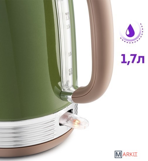 В носике чайника расположен съёмный фильтр, который задерживает частички накипи и предотвращает их попадание в чашку.Чайник оснащён контроллером Strix. Он устраняет риски короткого замыкания и возгорания прибора. Обеспечивает защиту при закипании, при включении чайника без воды и при снятии с базы во время работы.