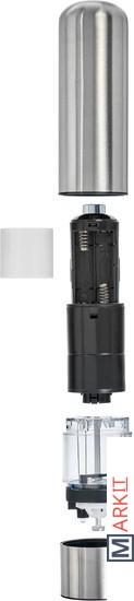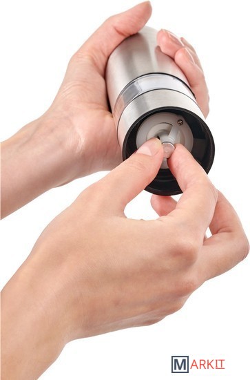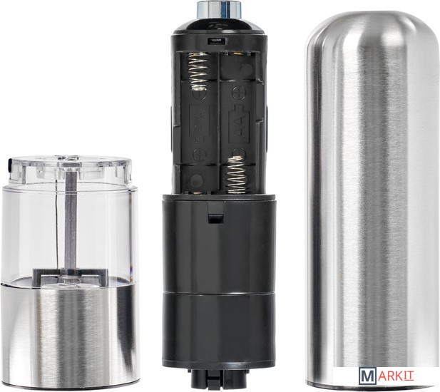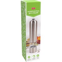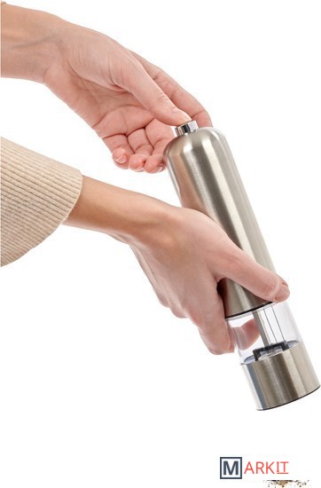 Многие кулинары советуют хранить специи в цельном виде, чтобы они не теряли полноты вкуса и аромата в перемолотом виде. Чтобы следовать советам шеф-поваров и не терять время на измельчение специй в современном быстром графике, используйте электрическую перцемолку. Работающая от батареек, она легко перемелет соль, перец и другие твердые специи — для этого вам нужно будет лишь нажать кнопку. В перцемолке установлен керамический жернов, который обеспечивает более тонкий и однородный помол и работает тише, чем стальной. Этот кухонный атрибут можно использовать как для одного вида специй, так и для душистых смесей. Вы можете выбрать необходимый размер помола, повернув кнопку в нижней части измельчителя. Встроенный в корпус из высококачественной нержавеющей стали светодиодный фонарик позволяет молоть специи даже в темноте.Преимущества:• Механизм с легкостью перемелет перец или крупную соль.• Можно выбрать необходимый размер помола: крупный, средний или мелкий — путём поворота кнопочки в нижней части перцемолки.• Светодиодный фонарик подсвечивает готовое количество специй в тарелке