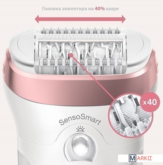Интеллектуальный датчик управляет вашей эпиляцией, информируя о необходимой силе давления, чтобы удалить еще больше волос одним касанием.