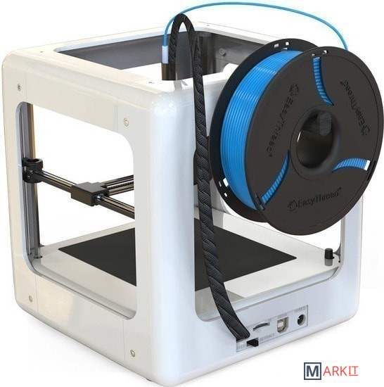 Маленький и безопасный принтер, ориентированный главным образом на детей, подростков или начинающих мейкеров с детьми, печатающих дома. Принтер очень компактный, его корпус изготовлен из ABS-пластика, печатающая головка с экструдером спрятаны под защитным кожухом, а все углы скруглены - дети при общении с принтером не рискуют удариться или обжечься.