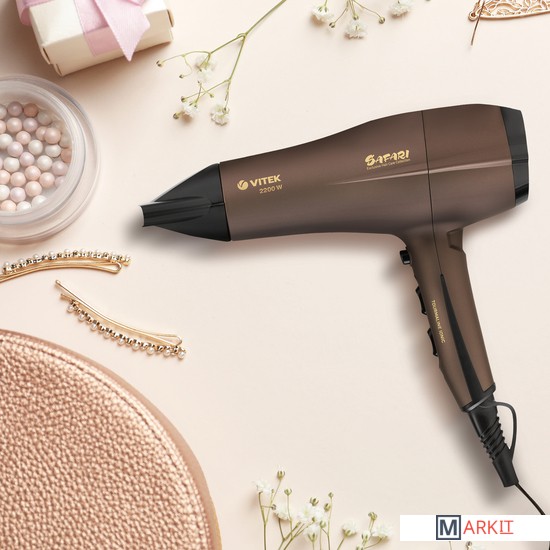Не только высушить волосы после мытья, но и уложить их в прическу поможет фен VITEK VT-1320 с тремя температурными режимами и двумя скоростями воздушного потока. Прибор оснащен защитой от перегрева, что значительно продлевает срок службы устройства. Максимальная мощность устройства — 2200 Вт. Решетка фена имеет инновационное покрытие Tourmaline Ionic, образующее при нагревании отрицательные ионы, которые запечатывают чешуйки волос и снимают статическое электричество. В комплект входят две насадки: концентратор и диффузор. Первый способствует усилению воздушного потока и воздействию на определенные пряди, что помогает создавать задуманную вами прическу. Диффузор обеспечивает более бережную сушку волос и создание прикорневого объема. Хотите зафиксировать прическу? Включите функцию подачи холодного воздуха! Пользоваться феном очень комфортно: благодаря покрытию Soft Touch прибор не скользит в руках. Удобству способствует и вращающийся шнур длиной 1,8 м. Фен имеет съемный фильтр, который легко промывается водой. По окончании использования прибор можно подвесить за удобную петельку. Купите фен VITEK VT-1320, который позволит вам заботиться о волосах и всегда выглядеть превосходно!