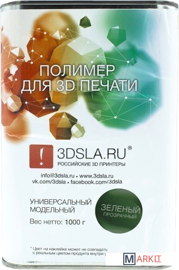 Markit » Расходные материалы для 3д принтера » Фотополимер 3DSLA Полимер универсальный модельный 1 кг (зеленый прозрачный)