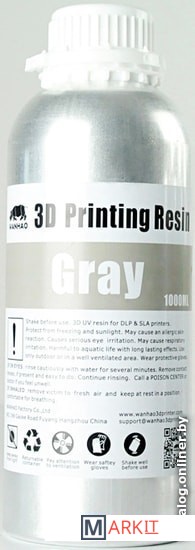 Markit » Расходные материалы для 3д принтера » Фотополимер Wanhao Water Washable 1000 мл (серый)