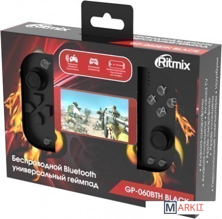 GP-060BTH — беспроводной геймпад от Ritmix. Он совместим с устройствами под управлением iOS от 9.3.2 до 11.* включительно (только в режиме iCADE и для ограниченного количества игр) и Android (3.0 и выше).Поддержка устройств шириной до 160 мм
