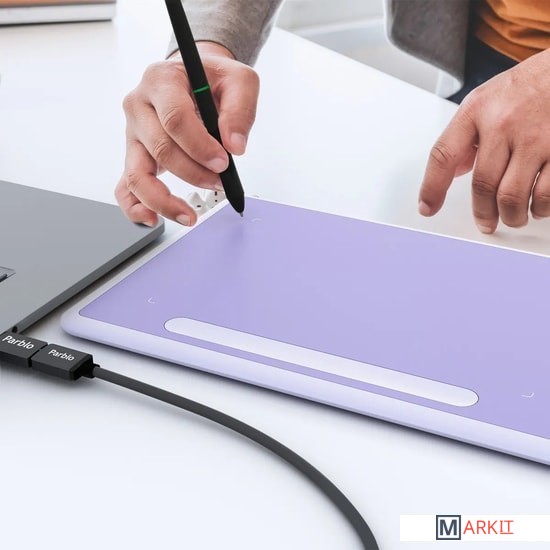 Новое поколение графических планшетов:- Серия цифровых планшетов Intangbo использует инновационную технологию беспроводной пассивной электромагнитной индукции и функцию определения наклона пера до 60 градусов. Теперь устройство возможно подключать к системе Android и использовать с различными программами для рисования на мобильных телефонах и планшетах.Дизайн устройства:- Рабочая область Intangbo M составляет около 10*6,25 дюйма, цвет продукта - Star Black.Общий дизайн выполнен с использованием стандартной компоновки 8 клавиш с левой стороны и колеса с механической осью, которое находится посередине области кнопок. Все клавиши легко настраиваются в интерфейсе драйвера устройства для повышения творческой эффективности.Максимальная функциональность:- Перо графического планшета имеет беспроводную технологию пассивной электромагнитной индукции, ручка для рисования не требует батареи или зарядки.8192 уровня чувствительности к давлению обеспечивают более тонкое и качественное рисование. Поддержка функции определения наклона пера ±60 градусов поможет вам профессионально штриховать и затенять изображения. Скорость чтения рукописного ввода составляет 266RPS, поэтому рисование плавное и без задержек.Режим левши:- Графический планшет Parblo Intangbo M (Black) поддерживает режим для левшей и для правшей для различных сценариев использования.Совместимость:- Windows: 7/8/10 (32/64 бит) или новее - Mac OSX: 10.11 или новее - Android 6.0 или новее
