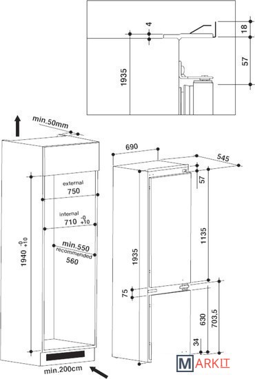 встраиваемый холодильник, большой холодильник, высокий холодильник |