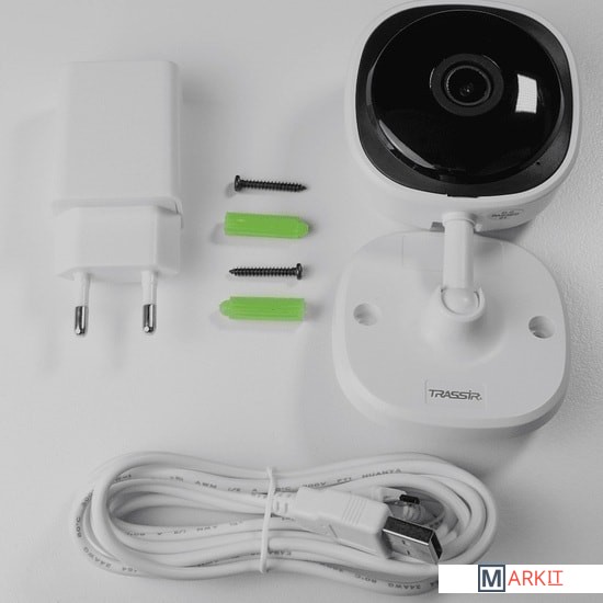 2Мп (1920×1080) IP-камера TRASSIR TR-W2C1 (2.8 мм) рассчитана на эксплуатацию в помещении, оборудована Wi-Fi-модулем для беспроводной передачи данных. Базируется на высокочувствительной (0.005 лк) CMOS-матрице размером 1/2.9 дюйма, укомплектована объективом с фиксированным фокусным расстоянием 2.8 мм. Камера подходит для ночного видеонаблюдения — оснащена ИК-подсветкой дальностью действия 10 м; поддерживает запись по сигналу детектора движения и режим день/ночь с механическим ИК-фильтром, блокирующим ИК-лучи при достаточном освещении; в темноте фильтр сдвигается в сторону от матрицы для расширения ее чувствительности в ИК-диапазон и работы подсветки.