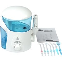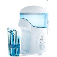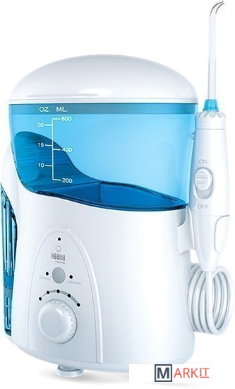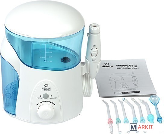 Дезинфекция насадок встроенной системой UV диапазонаДомашняя станция для каждодневного использования с функцией дезинфекции насадок!Прекрасно подходит для личной гигиены и защиты здоровья всей семьи! Широкий функционал использования благодаря дополнительным насадкам, настраиваемым режимам и объемному резервуару.Сочетание высокого давления и пульсирующей технологии подачи воды не просто удаляет остатки пищи, но и большинство вредных бактерий, способствуя улучшению микрофлоры ротовой полости.В комплект поставки входит сразу семь различных насадок для всех членов семьи, а удобный встроенный в крышку контейнер обеспечит их надежное хранение.Механический регулятор давления (10 уровней давления водной струи).