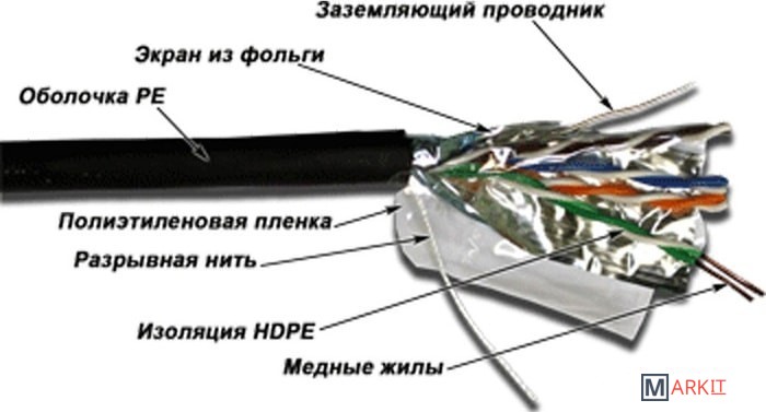 Кабель 4-парный, экранированный, категории 5E для наружной прокладки