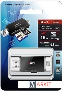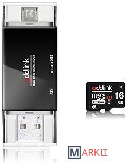 Markit » Картридеры » Карт-ридер Addlink Dual USB Card Reader + 16GB UHS-I microSDHC