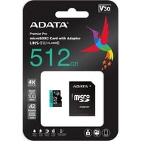 Markit » Карты памяти » Карта памяти ADATA Premier Pro AUSDX512GUI3V30SA2-RA1 microSDXC 512GB (с адаптером)