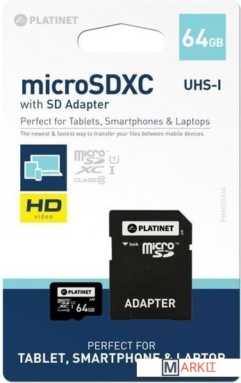 Markit » Карты памяти » Карта памяти Platinet PMMSDX64 64GB + адаптер