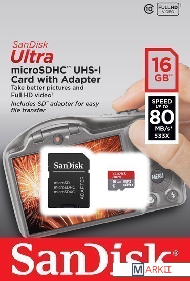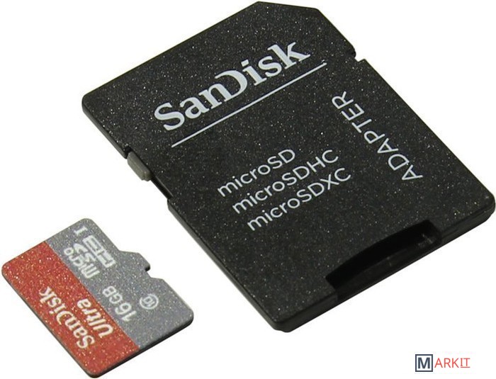 Markit » Карты памяти » Карта памяти SanDisk Ultra microSDHC 16GB Class 10 + адаптер (SDSQUNC-016G-GN6IA)