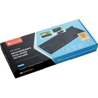 Эта беспроводная клавиатура держит связь с четырьмя разным устройствами одновременно. Три канала Bluetooth и один беспроводной USB-канал позволят мгновенно переключаться между устройствами на расстоянии 10-метров. Клавиатура совместима со всеми современными моделями ПК, планшетами, смартфонами, Smart TV, Apple TV. Клавиши мягкие и тихие, тачпад поддерживает управление жестами. Несмотря на тонкую форму устройства, в него встроена перезаряжаемая батарея, способная работать более 4 дней на одном заряде. Отличным дополнением ко всем вышеперечисленным функциям является ячейка-холдер для смартфона и планшета, размещенная на фронтальной панели клавиатуры.