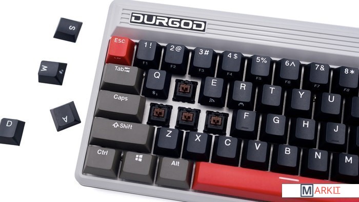 КЛАВИАТУРА БЕЗ КИРИЛЛИЦЫТип: тактильный Сила нажатия: 55 грамм (средние)Длина пути: 4 мм (2 мм до срабатывания)Помимо подключения через стандартный кабель USB клавиатура может работать в одном из двух беспроводных режимов — Bluetooth 5.0 или беспроводном соединении 2.4G, обладающем меньшей, по сравнению с Bluetooth, задержкой. Переключение между режимами осуществляется с помощью специального слайдера в верхней правой части. Благодаря беспроводному подключению вы также можете подключить клавиатуру к устройствам на iOS или Android.Два кабеля в комплекте - Вы можете использовать как USB Type-C, так и старый добрый USB Type-A.Мультимедиа и дополнительные FN функции - Клавиатура поддерживает сочетания клавиш для регулировки громкости и управления музыкой. Также имеется возможность отключить кнопку Windows.Durgod Zeus Engine позволяет создавать макросы. Можно создать свои мультимедиа, функциональные макросы и многое другое. ПО не поддерживается на Mac OS.Прочные регулируемые ножки позволят немного приподнять клавиатуру и изменить её угол наклона для более комфортной печати, а их прорезиненное дно не даст клавиатуре сдвинуться с места.Функция Full N-key Rollover по USB (NKRO) - Позволяет нажимать одновременно неограниченное количество клавиш. Для печати идеально подойдет как 6KRO, так и NKRO, независимо от вашей скорости. Для игр NKRO будет плюсом и неважно, нажимаете ли вы больше 6 кнопок или нет, поскольку, играя в любую игру, вы можете случайно нажать пару лишних клавиш и из-за этого клавиатура может не среагировать на нажатие, которые вы хотели совершить изначально. Осторожно, старые BIOS-ы могут не реагировать на клавиатуру из-за NKRO.