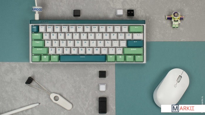 Переключатели Gateron CAP V2 CrystalНовейшая разработка Gateron, созданная в сотрудничестве с Durgod на основе Gateron CAP. Переключатели смазаны с завода, а конструкция стэма и хаузинга переработана таким образом, чтобы выпускать избыточный воздух при нажатии, благодаря чему они ощущаются стабильнее и мягче. Производителем заявлен ресурс более 80 миллионов нажатий (более 60 миллионов для Blue). Durgod K330W — первая массовая клавиатура с этими переключателями.Два режима беспроводного подключенияПомимо подключения через стандартный кабель USB клавиатура может работать в одном из двух беспроводных режимов — Bluetooth 5.0 или беспроводном соединении 2.4G, обладающем меньшей, по сравнению с Bluetooth, задержкой. Переключение между режимами осуществляется с помощью специального слайдера, расположенного справа на задней стороне клавиатуры. Благодаря беспроводному подключению вы также можете подключить клавиатуру к устройствам на iOS или Android. В беспроводном режиме можно подключить до 3-х устройств одновременно и переключаться между ними с помощью всего пары нажатий. Подробнее в инструкции.В модели K330W Durgod переработали и улучшили 2.4G адаптер: теперь он устойчивее к помехам от окружающего пространства, благодаря чему сигнал стал сильнее и стабильнее, а время отклика уменьшилось.До 240 дней работы без подзарядкиОптимизированное энергопотребление позволило добиться невероятно долгого времени работы в беспроводном режиме без использования большого и тяжёлого аккумулятора. Производитель обещает до 180 дней без подзарядки в режиме 2.4G и до 240 дней в режиме Bluetooth!ПортативностьСочетание компактности 60% формата, исключительной автономности и лёгкости (вес клавиатуры — всего 520 грамм) позволяет легко носить клавиатуру с собой и брать её куда угодно, не испытывая проблем с нехваткой мобильности.Мультимедиа и дополнительные FN функцииКлавиатура поддерживает сочетания клавиш (FN + Z, X, C, V, B, N, M) для регулировки громкости и управления музыкой. Также имеется возможность отключить кнопку Windows.Стабилизаторы, смазанные на заводеСочетание стабилизаторов и смазки позволяет добиться максимально равномерного и плавного хода клавиш enter/space/shift/backspace, а сами клавиши легко снять с клавиатуры.PBT Double-shot клавишиИзготовлены из высокопрочного пластика PBT с применением double-shot технологии, что гарантирует их долговечность и надёжность в эксплуатации.ПрограммируемаяПрограмма Durgod Zeus Engine позволяет создавать макросы. Можно создать свои мультимедиа, функциональные макросы и многое другое. ПО не поддерживается на Mac OS, однако все ваши настройки, сохранённые в программе на Windows, останутся в памяти клавиатуры, и вы сможете использовать их на Mac.Регулируемые ножкиПрочные регулируемые ножки позволят немного приподнять клавиатуру и изменить её угол наклона для более комфортной печати, а их прорезиненный низ не даст клавиатуре сдвинуться с места.Клавиатура совместима с Mac OSМультимедийные функции (за исключением Launchpad, Mission Control и регулировки яркости экрана) доступны через сочетания FN + Z, X, C, V, B, N, M и работают как полагается, а поменять местами клавиши-модификаторы можно в системных настройках.Функция Full N-key Rollover по USB (NKRO)Позволяет нажимать одновременно неограниченное количество клавиш. Для печати идеально подойдет как 6KRO, так и NKRO, независимо от вашей скорости. Для игр NKRO будет плюсом и неважно, нажимаете ли