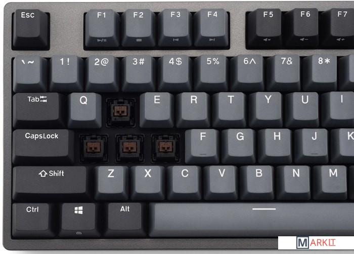 КЛАВИАТУРА БЕЗ КИРИЛЛИЦЫТип: кликающийСила нажатия: 60 грамм (несмотря на вес, средние)Длина пути: 4 мм (2.2 мм до срабатывания)Клавиатура поддерживает сочетания клавиш для регулировки громкости и управления музыкой. Также имеется возможность отключить кнопку Windows.Два кабеля в комплекте - Вы можете использовать как USB Type-C, так и старый добрый USB Type-A.Durgod Zeus Engine позволяет создавать макросы. Можно создать свои мультимедиа, функциональные макросы и многое другое. ПО не поддерживается на Mac OS.Канавки для укладки кабеля - Расположены с обратной стороны клавиатуры и позволяют выводить кабель в трёх направлениях — слева, справа и посередине.Двойные регулируемые ножки предоставляют целых три варианта угла наклона клавиатуры для более комфортной печати, а их прорезиненное дно не даст клавиатуре сдвинуться с места.Позволяет нажимать одновременно неограниченное количество клавиш. Для печати идеально подойдет как 6KRO, так и NKRO, независимо от вашей скорости. Для игр NKRO будет плюсом и неважно, нажимаете ли вы больше 6 кнопок или нет, поскольку, играя в любую игру, вы можете случайно нажать пару лишних клавиш и из-за этого клавиатура может не среагировать на нажатие, которые вы хотели совершить изначально. Осторожно, старые BIOS-ы могут не реагировать на клавиатуру из-за NKRO.