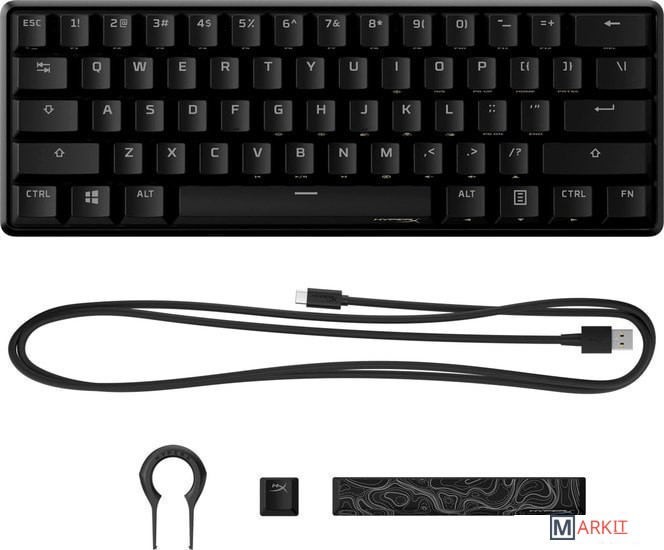 - съемный кабель (USB Type-C - USB Type-A)- две сменные клавиши (Esc и пробел)- приспособление для замены кейкапов- документация |