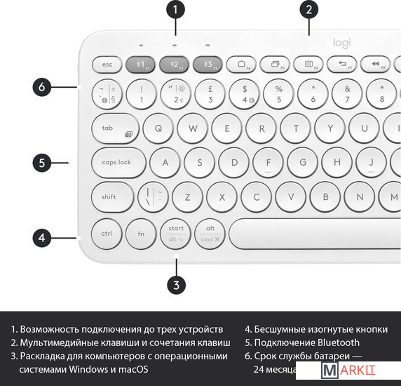 Markit » Клавиатуры » Клавиатура Logitech Multi-Device K380 Bluetooth (белый)