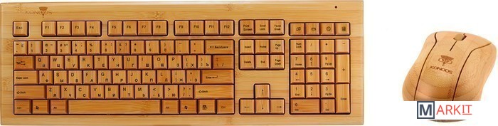 Беспроводные клавиатура и мышь из натурального природного материала — бамбука.