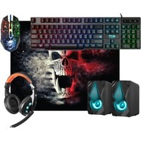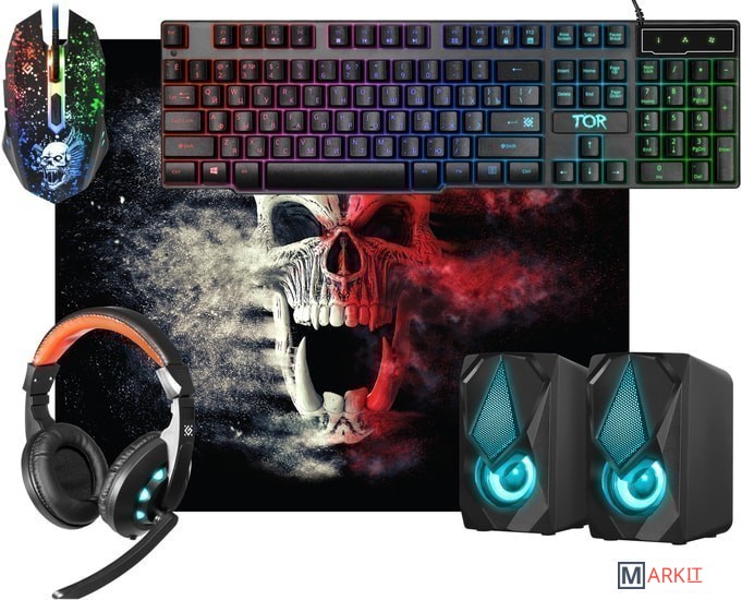 клавиатура + мышь с ковриком + наушники + колонки |