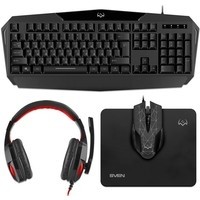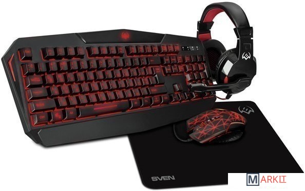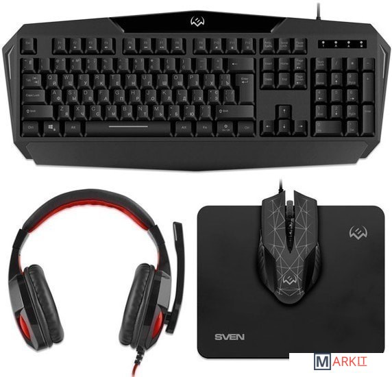 клавиатура + мышь с ковриком + наушники |