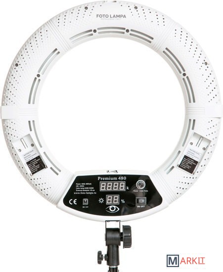 Лампа абсолютно универсальна и подойдет для любого бьюти специалиста, на модель Premium 480 можно делать отличные фото (визажист, парикмахер и тд) а так же работать под лампой (лэшмейкер, мастер перманентного макияжа, косметолог).Мощный световой поток — 9600 люмен, позволяет ярко освещать объекты с дальних расстояний (6-8 метров). Такой лампы достаточно, чтобы осветить большую фотозону с несколькими людьми или полностью рабочую зону визажиста, без использования дополнительного освещения.Теплый | нейтральный | холодный свет и регулировка яркости – необходимые функции для всех, кто создает портфолио. Добивайтесь необходимых эффектов в работе и во время съемки просто сменив цветовую температуру освещения!Кольцевая лампа имеет очень надежные крепления, что позволяет абсолютно безопасно наклонять ее над клиентом и фиксировать в горизонтальном положении (под углом 90 градусов).Удобный цифровой дисплей для регулировки яркости и цветовой температуры.Кольцевая лампа обеспечивает равномерное освещение, которое при необходимости можно направить в любую сторону. Также лампа совместима с любыми смартфонами, фото/видеокамерами и планшетами и может использоваться как большая лампа на штативе для селфи. Кольцевой свет лампы интересно подчеркивает фактуру кожи, идеально передает оттенки макияжа и цвет волос, лампа не нагревается и макияж не «плывет». Фотографии получаются потрясающими даже без обработки.Комплектация:лампа, штатив, сумка, сетевой кабель, крепление для телефона, зеркало, гибкое крепление, селфи пульт.