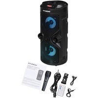 - один проводной микрофон- аудиокабель для микрофона- USB кабель для зарядки- AUX кабель- съемный ремешок- пульт ДУ- документация |