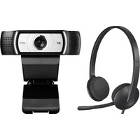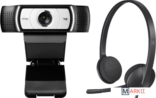 Комлптек для видеоконференций осстоящий из веб-камера Logitech C930n и накладных наушников Logitech H340.