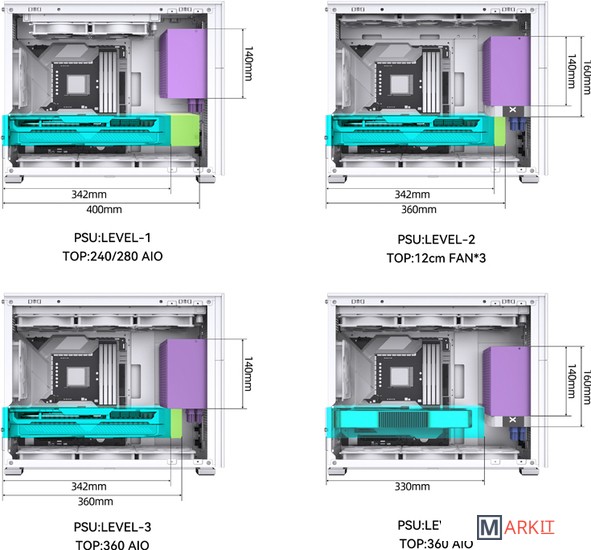 Поддерживаемые СЖО сверху: 240 - 360 ммснизу: 240 - 360 ммсзади: 120 мм