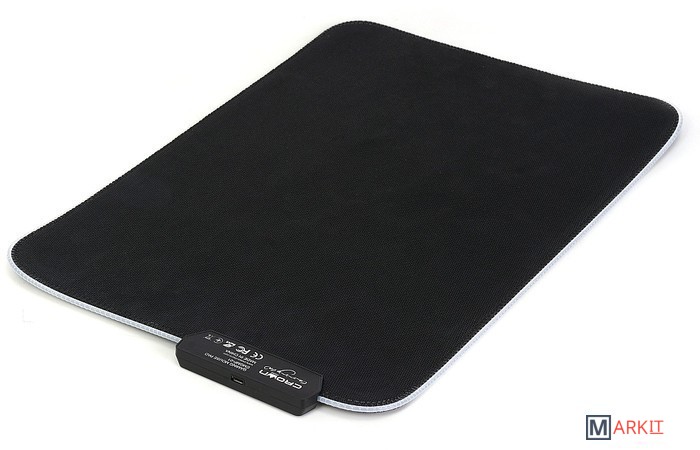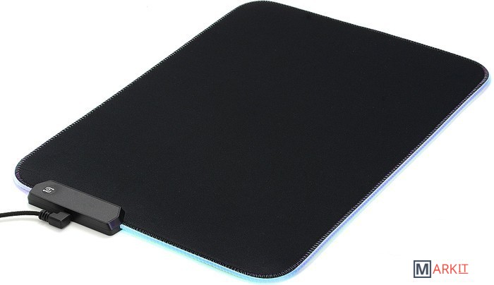 Гибкий коврик для компьютерной мышки с подсветкой. Текстильное покрытие из тонких нитей с мелкоячеистой структурой обеспечивает лёгкое скольжение мышки по поверхности, а вспененная резиновая основа препятствует смещению самого коврика. Переключаемая RGB подсветка имеет несколько профилей, сменяемых нажатием кнопки: красный, синий, зелёный, фиолетовый, голубой, жёлтый, белый, переливающийся (изменение яркости - двойное нажатие, отключение подсветки - удержание).