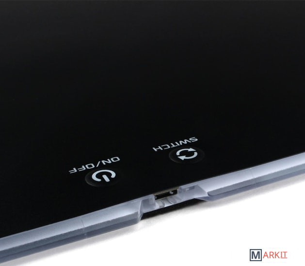 9 режимов задней LED-подсветки;Переключатель яркости подсветки;Ультра гладкая поверхность для эффективного скольжения;Противоскользящая прорезиненная основа для стабильной работы.