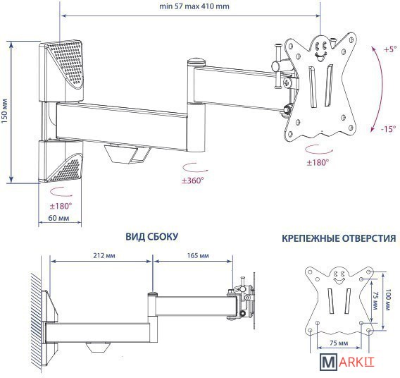 Расстояние от стены (потолка) | 57 — 410 мм |