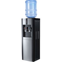 Напольный кулер с нагревом без охлаждения черного цвета с серебряными вставками. Модель отличает стильный дизайн и широкий функционал. Кулер с высокой производительностью, благодаря чему за один час можно получить 5 литров горячей воды. Для быстрого и удобного наливания воды в стакан или чашку предусмотрены два крана с механизмом «нажим кружкой».