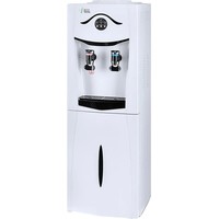 Напольный кулер с холодильником. Компрессорное охлаждение. Корпус черного цвета с серебристой вставкой передней лицевой панели, краны черного цвета, поддон серебристый. Шкафчик-холодильник. Краны нажим «кружкой». Индикация на лицевой панели. Отдельные выключатели на нагрев и охлаждение на задней стенке.