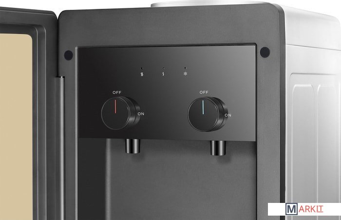 1. Уникальные поворотные краники подачи воды.2. Интегрированный маршрутизатор водораспределения.3. Современная стильная внешность.4. 270 ° цельная металлическая панель корпуса.5. Супер просторный шкафчик на 36 литров.6. Эргономически расположенный дренаж на передней панели.Для того чтобы налить воду, нужно поставить чашку на каплесборник под кран, повернуть регулятор крана из положения OFF в положение ON.После того как нужный уровень воды в чашке будет достигнут, повернуть регулятор крана в обратном направлении. Теперь можно одновременно разговаривать по телефону, держать сэндвич и наливать кофе.Чтобы обеспечить корпусу кулера повышенную прочность боковые и задняя панель выполнены из единого листа металла. Отсутствие лишних швов и соединений сделало кулер особо устойчивым к возможным механическим воздействиям при перевозке или перемещениях в пределах помещений, где он установлен.Из дополнительных бонусов представленной модели кулера - это шкафчик объемом 36 литров, который пригодится для хранения посуды и продуктов, не требующих низкотемпературного режима хранения.
