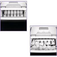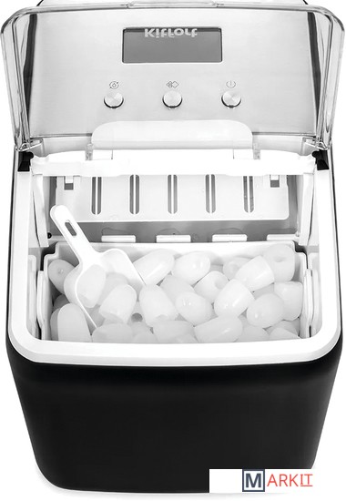 Лёд всего за 13 минут!Льдогенератор КТ-1819 – прибор, который быстро генерирует лёд. Его можно использовать дома для приготовления охлаждённых напитков или для охлаждения жидкостей. Готовый лёд не подмораживается, а медленно тает благодаря термоизолированным стенкам.Генерация льда в виде напёрстков с функцией изменения размера льдаИз-за оригинальной технологии приготовления лёд получается в виде напёрстков. Толщина у них небольшая, поэтому лёд легко измельчается блендером. Напёрстки компактно помещаются в стакане, при этом хорошо пропуская жидкость, которую надо охладить.Автоматическая работаОхлаждение в приборе производится при помощи компрессора с экологически чистым хладагентом R600a по принципу обычного холодильника. Вам нужно просто залить чистую фильтрованную воду в резервуар и нажать кнопку. Остальное льдогенератор сделает сам!Отлаженный механизм генерации льдаПосле попадания воды в лоток для льда под испарителем, на поверхности испарителя намерзает вода. Когда лёд готов, на него подаётся горячий пар. Он начинает таять и отваливаться от испарителя. Все упавшие кусочки льда отправляются в корзину.Всегда полная корзина!Благодаря инфракрасному датчику заполнения корзины, при её переполнении генерация льда автоматически прекращается. В случае, если лёд достали, льдогенератор запускает цикл заново, пока корзина не будет заполнена. В комплекте идёт совок для черпания льда.Простое управление и яркий дисплейУправление и выбор размера льда осуществляется с помощью кнопок на панели управления. На экране отображается таймер, выбранный размер льда, индикация работы, наличия воды и необходимости проведения очистки.Удобный сливЕсли в резервуаре осталась вода, её можно легко вылить. Для этого нужно выдвинуть прибор на расстояние 60 мм от стола, подставить ведро или какую-нибудь ёмкость для воды, и вытащить сливную пробку.Отклеивающийся стикер!Наша техника порадует вас не только своим функционалом, но и интересным дизайном! В любой момент вы можете отклеить креативный стикер без вреда для поверхности.