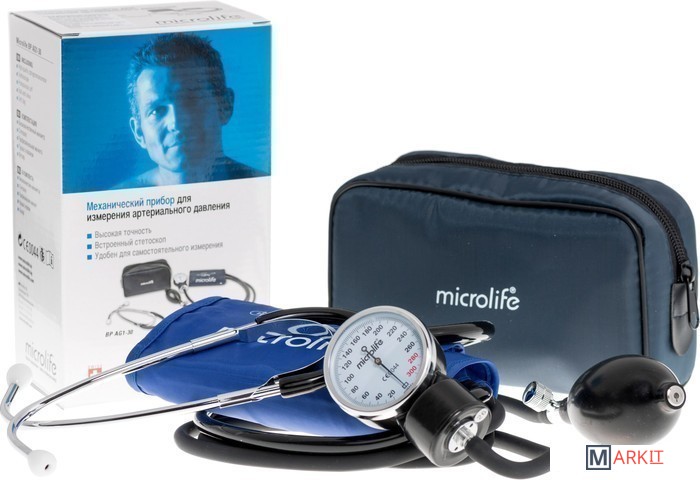 При помощи своего современного безостановочного механизма с игольчатым клапаном и эргономичного резинового баллона, снабженного клапанами, Microlife AG1-30 обеспечивает Вам точные и достоверные измерения.Встроенный в манжету с кольцом стетоскоп значительно упрощает использование прибора AG1-30. Износостойкая капроновая манжета и прочные материалы, используемые в механическом измерителе давления, обеспечивают надежность прибора.