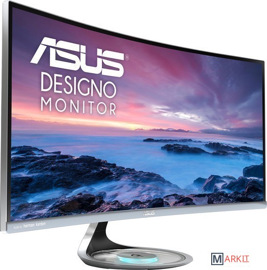 ASUS MX34VQ - 34-дюймовый монитор с изогнутым безрамочным экраном формата UWQHD, беспроводной подзарядкой Qi и звуком от Harman Kardon.