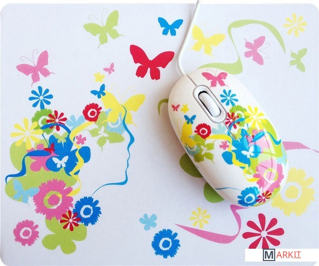 Яркий комплект компьютерной мыши и коврика. Манипулятор подходит для работы как правой, так и левой рукой.